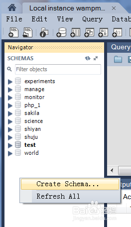 登录用户root,密码。进入到这个界面了。点击schemas,切换到图解模式。