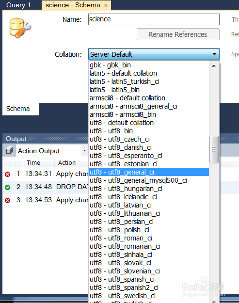 重命名,选择默认编码集,utf-8。然后点击Apply。就会出现新建的数据库了。