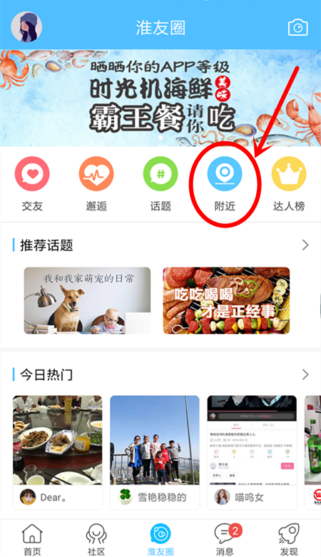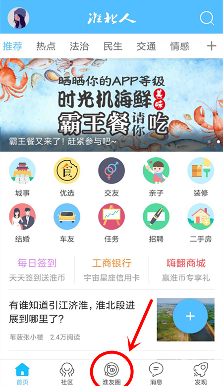 查看附近淮北人的方法1:打开淮北人APP点击“淮友圈”