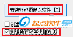 1、打开软件,勾选创建所以程序快捷方式,然后点安装摄像头