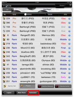 (3)自动对局申请:在大厅点击“Automatch”按钮自动进行对局申请