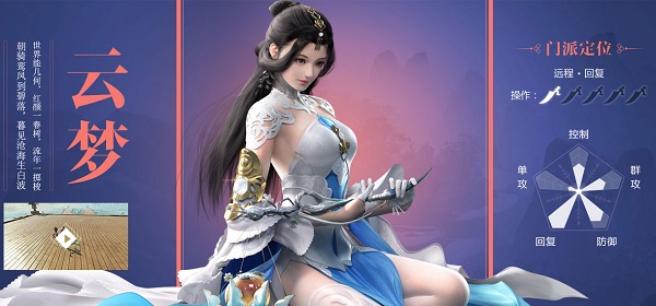 云梦作为一个治疗门派,技能偏辅助向,拥有较强的防御和团队协作技,能为队友提供值得依靠的续航支持。她的很多技能可触发普攻为自己回血的效果,加上中远程的攻击特征,自保能力不俗。