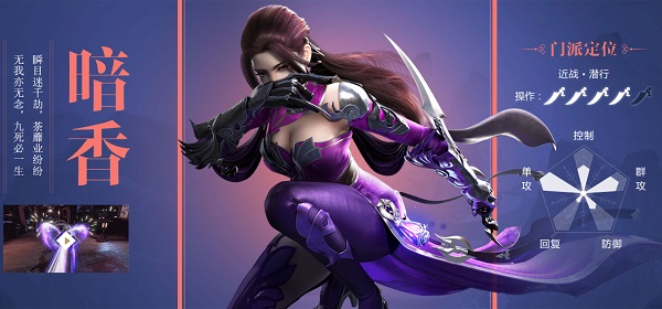作为近战刺客的暗香,拥有变幻不定的身影。不仅能发动影分身,还有特色隐身技:隐身结束后暴击率大大提高,若从背后发起攻击,还能造成额外伤害。