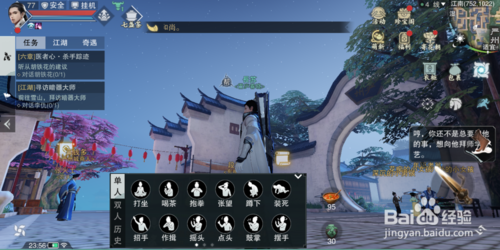 楚留香手游怎么打坐和做动作打坐方法:在游戏中间下方聊天窗口左侧,有两个小图标,点下下面的人形标识的图标