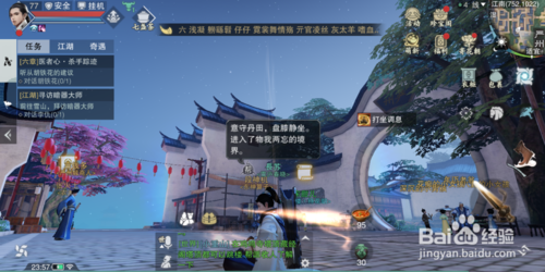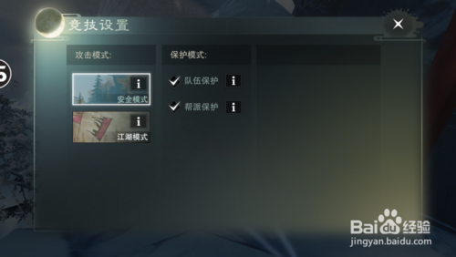 整体修为上去之后,我们就开始准备进行击败其他玩家,首先第一种,有处罚模式的,点击右上角安全模式-点击之后,修改为江湖模式,这个时候你就能够进行杀人了,但是红名关闭需要10分钟时间,这个时候,别人也是能够打你的