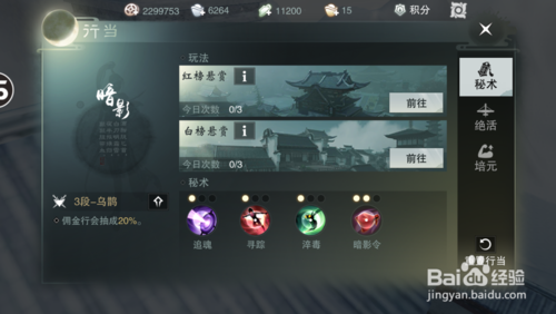 暗影行当,需要去接红榜悬赏,之后跳到被悬赏的玩家那,开启暗影独特的模式,将其困在一个范围内,之后对其进行解决,当然实力不行也是被解决的份