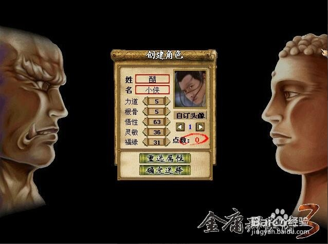 首先进古墓派福缘高是很重要的:所以我初始属性把福缘加到了31,为了让福缘足够高后面游戏开始回答的第十一个问题我选择“资质异常低劣”可以直接加50福缘,这样游戏的开始我的福缘就大于80了。为了让练功快小编把其余点数加到了悟性和灵敏。还有我们要走的是古墓派,梦中情人自然选小龙女了。