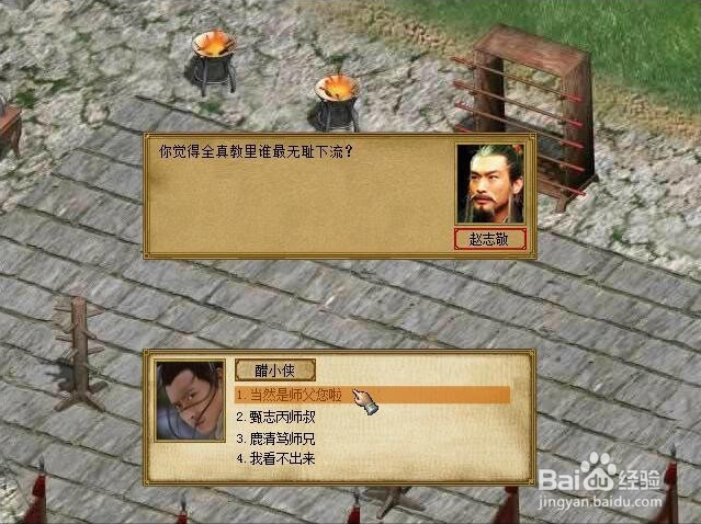 赵志敬的最后一个问题直接骂他:"你觉得全真教里谁最无耻下流?“——”当然是师傅您啦。“