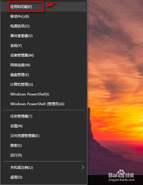 我们在电脑任务栏的左下角鼠标右键那个win图标选择应用和功能那个菜单按钮