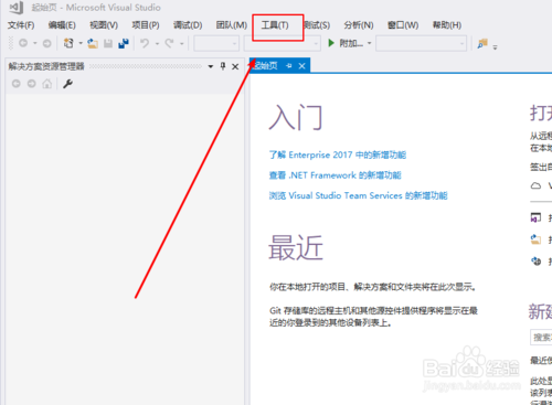 Visual studio 2017怎么切换开发环境先在当前的开发环境中单击菜单栏上的“工具”。