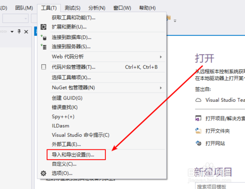 在弹出的下拉菜单中选择“导入和导出设置”。