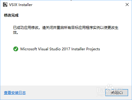 按照提示,关闭所有VS窗口,自动安装,如下图所示: