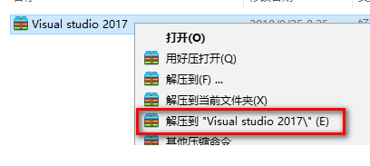 首先在本页面下载Visual studio 2017压缩包,鼠标右键解压到“Visual studio 2017”