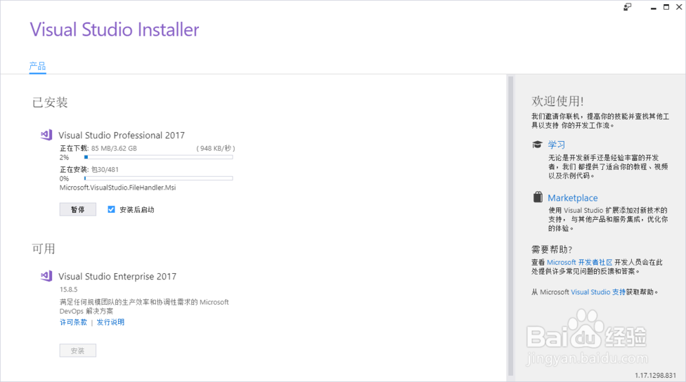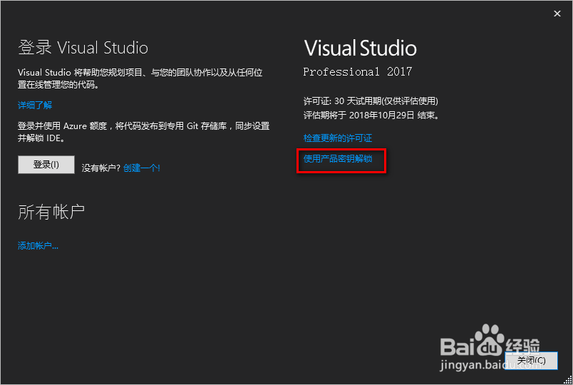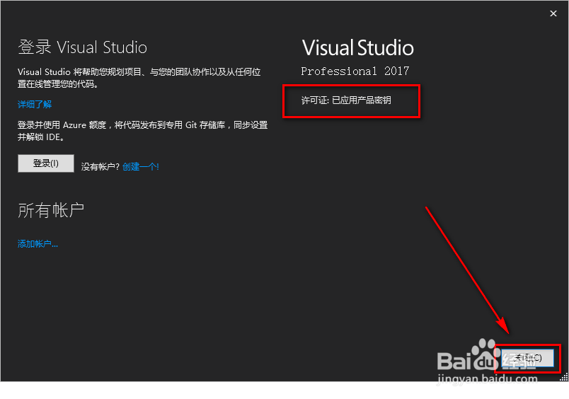 安装好Visual studio 2017之后,我们再进行软件的激活。步骤如下: