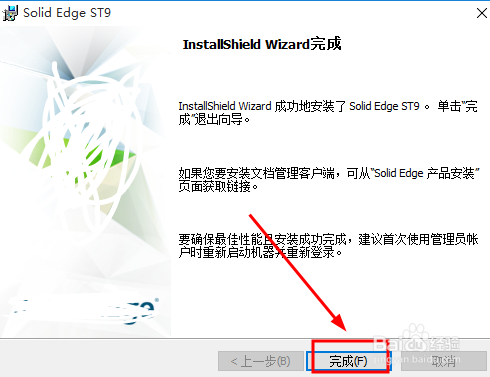 安装完成后出现如图所示的界面 点击完成按钮关闭对话框即可