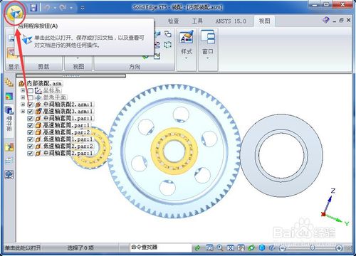 在零件环境下单击软件左上角的“应用程序按钮(A)”;