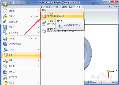 在弹出的下拉菜单中单击“属性”,在“属性”栏中单击“材料表”,注意只有在零件环境下才有效;