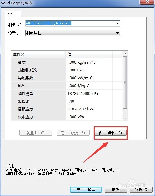 选中需要删除的材料后,单击“从库中删除”,这样目标材料就成功删除了;