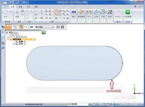 如果拉伸的方向已有特征填充着区域,则在这个区域投影所到的区域拉伸时可以只做一个未封闭的草图,如下图所示:
