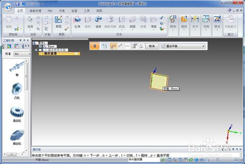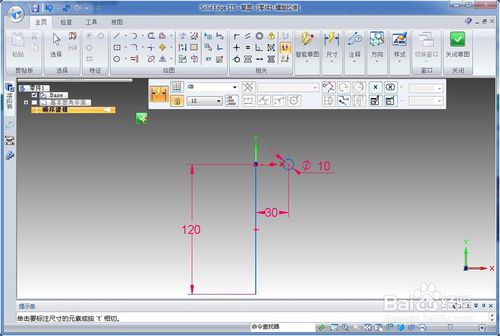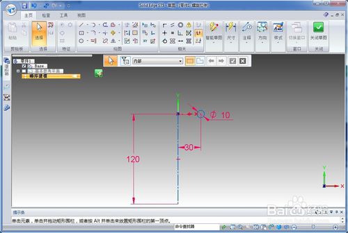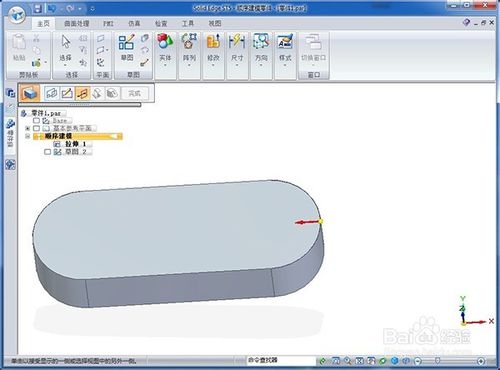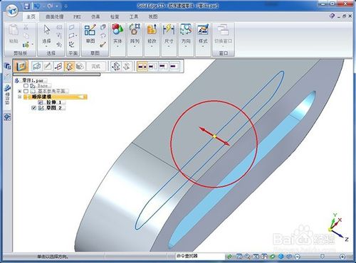 系统提示“单击平的面或参考平面”,单击一个平面绘制草图,如图所示:
