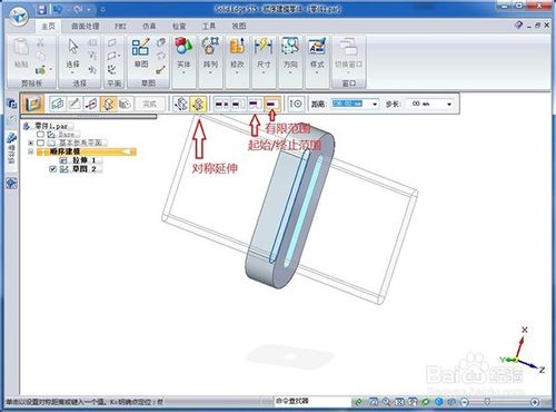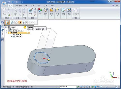 在除料过程中,如果想把整个厚度方向的材料去除,我们可以使用“贯通”功能,如下图所示: