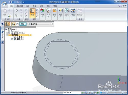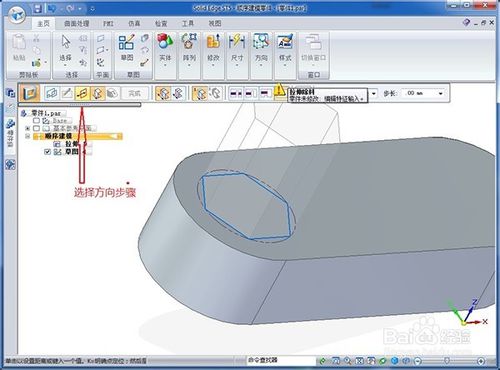 在做好六边形草图后退出草图环境,点击“选择方向步骤”,如下图所示: