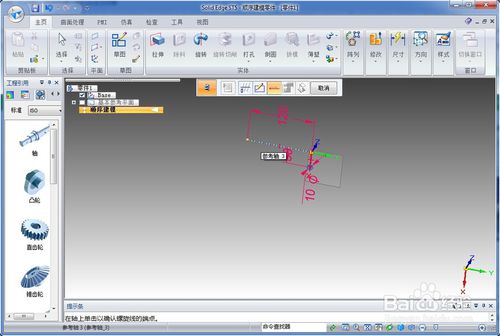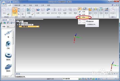 关闭草图,按照系统提示“在轴上单击以确认螺旋线的端点”,单击草图中的轴,如图所示: