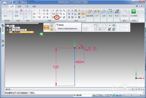 单击“旋转轴”指令,将直线转换成轴线,如图所示: