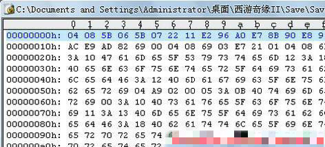 如图所示,打开存档。可以看到我们打开了一堆乱码的东西(大家无视乱码)