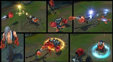 赶快欣赏一下lol皮肤宝贝修改皮肤后的游戏吧!下面是修改皮肤后游戏的截图:分别是英雄换肤、地图美化、加载背景美化、UI美化、守卫换肤。