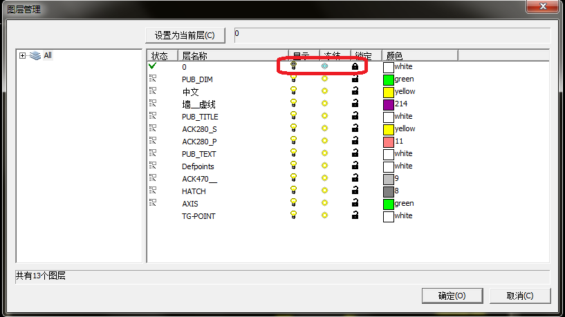 本软件提供图层管理功能,使用者单击鼠标右键或者点击图层管理的图标,选择“图层管理”进入图层管理界面,该界面可进行“显示”“冻结”“锁定”的更改,单击相应图标即可进行设置。