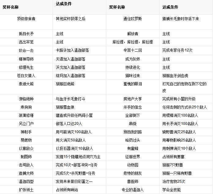 游戏中的成就与搜集物品或完成特定任务有关,成就不影响玩家的能力,当玩家达成某项成就后会在游戏页面中弹出个人成就完成提示。达成任务的条件各不相同,有难有易。游戏中共有51个奖杯可达成,包括铜杯38个、银杯10个、金杯2个及取得所有的奖杯后获得的白金奖杯。