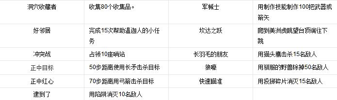 弓:传统的自制弓箭,特点为安静且致命,主要的远程攻击方式之一,偷袭敌人和狩猎都是不错的选择,箭头可以回收,升级后可以变成射程和威力更强的长弓以及双重弓,并且可以解锁多重射击。