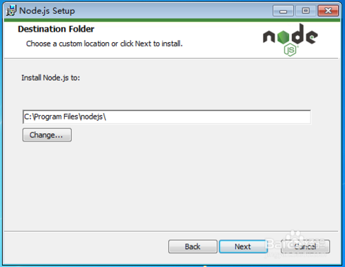 下图中是选择nodejs的安装位置,这里小编默认安装在C盘,然后继续下一步,如下图: