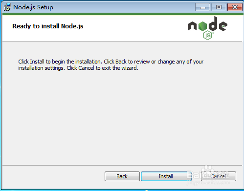 下图中是确认当前配置,然后点击【Install】开始进行安装Nodejs,如下图: