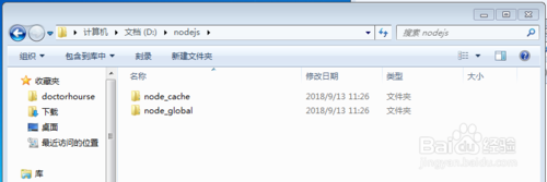 小编来配置一下nodejs的全局模块的存放路径还有缓存文件的存放路径,大家可以任意选择一个位置放置这两个文件,小编的nodejs安装在c盘中的,但是不希望全局模块以及缓存文件都放置在c盘,所以这里也可以将nodejs的这两个文件放置在D盘,小编首先在D盘中新建一个nodejs的文件夹,然后在nodejs的文件夹中创建一个node_cache文件夹用于存放缓存文件,创建一个node_global文件夹用于存放全局模块,如下图: