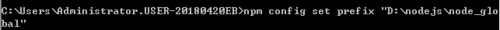 然后打开cmd命令窗口,使用命令【npm config set prefix "D:\nodejs\node_global"】配置全局模块文件夹的存放路径,如下图: