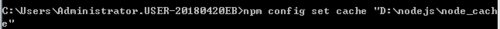 在cmd命令窗口中使用命令【npm config set cache "D:\nodejs\node_cache"】配置缓存文件夹的存放路径,如下图: