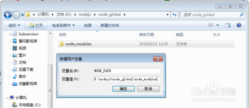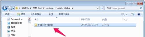 然后在node_global文件夹中创建一个node_modules文件夹,如下图: