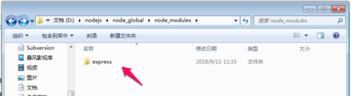 打开之前创建的node_global文件夹下的node_modules文件夹下,可以看到新安装的express模块,说明配置全局模块已经成功,如下图: