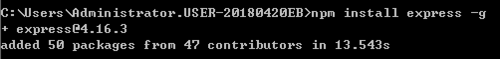 然后打开cmd命令窗口测试一下刚才是否配置成功,输入【npm install express -g】,安装一下express模块试试【-g】表示将模块安装到全局global目录下,也就是之前创建的node_global文件夹下,如下图: