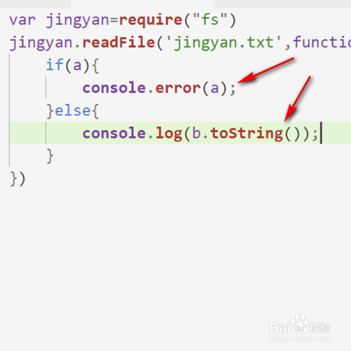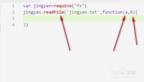 如图,开始读取文件,把要读取的文件参数,以及设置一个回调函数就可以了。匿名回调函数第一个参数保存错误,第二个参数保存数据。