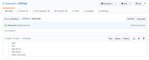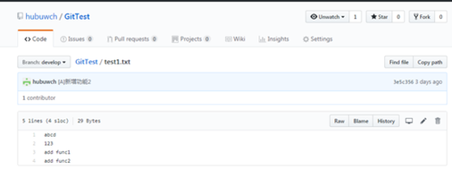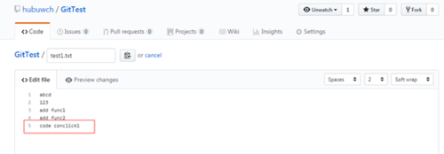 登录GitHub ,打开GitTest,编辑test1.txt文件