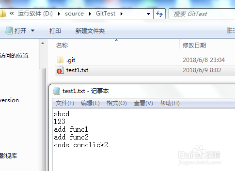 打开本地工作副本的test1.txt文件,新增内容code conclick2,如下图: