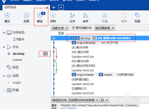 可以看到冲突已解决,代码已正确合并。推送该合并。