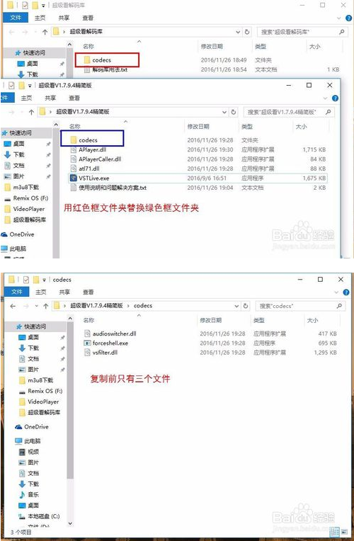添加解码库:将解码库解压,将解码库文件夹里的codecs文件夹复制到软件所在文件夹替换里面的同名文件夹