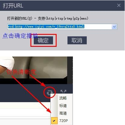点播:打开浏览器,在浏览器打开要看的视频,复制播放页面复制网址,然后关闭网页,打开软件,在界面右击,在弹出的菜单中点击“打开网络URL”,弹出窗口会自动输入你刚才复制的网址到输入框,点击确定开始播放,开始播放后还能切换清晰度。