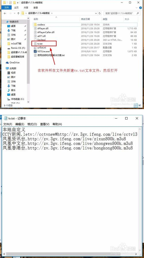 自定义列表:在软件所在文件夹新建tv.txt文本文件,然后用记事本打开,