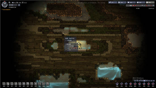 4.游戏的操作分别以四个角落的菜单栏进行展示,菜单之间分工明确:左上角显示生活周期等相关信息,同时给予游戏提示,在这里,玩家可以加速/暂停游戏时间;右上角显示获得资源、角色技能、周围环境的氧气温度水分等等信息;左下角菜单可建造生活必需品,右下角菜单为打造地形。