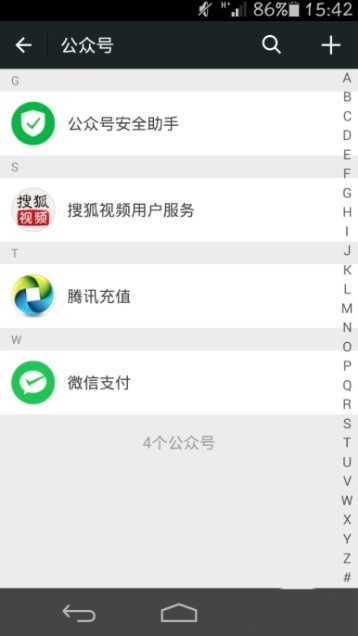 2、关注后,在自己的手机微信A公众APP上打开公众号,找到搜狐视频用户服务公众号点击进入